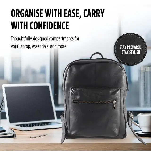 Storage Space: This notebook backpack has 2 inner compartments and a front zip compartment, providing ample room for your charger, accessories, and essentials, making it ideal for work or travel ^^ Leather Laptop Backpack with Adjustable and