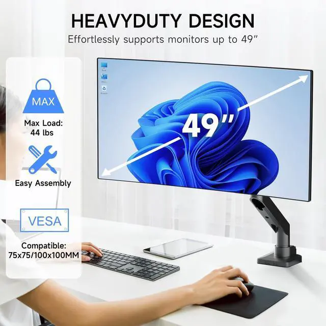 Ultrawide Compatibility: Suptek heavy duty monitor arm ideal for most screens up to 49" and 44lbs with 75x75mm or 100x100mm backside mounting holes ^^