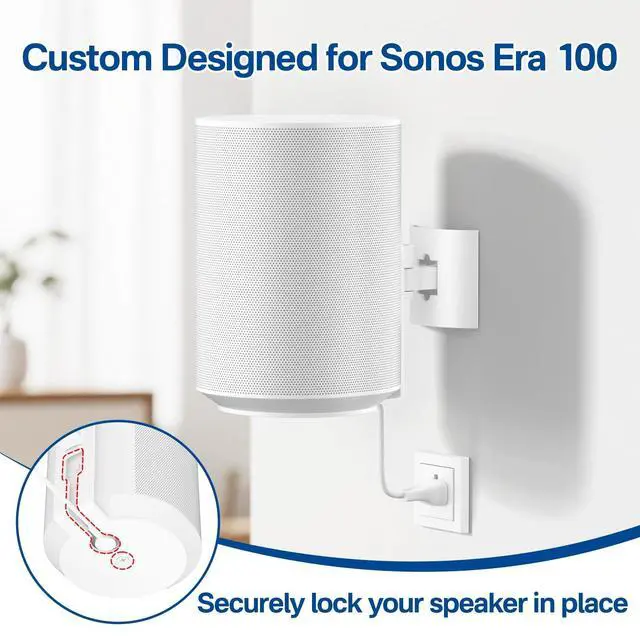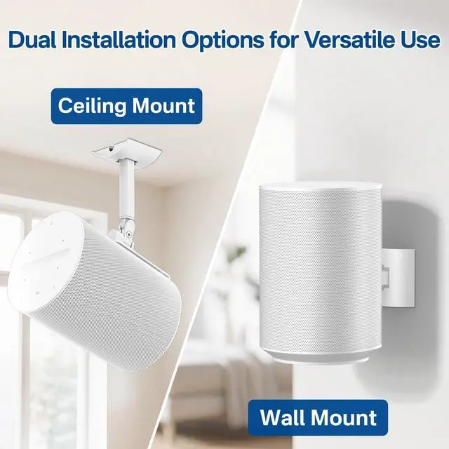 Perfect for Sonos Era 100 - Engineered for Sonos Era 100 speaker wall mount, this wall mount features dedicated bottom-fixing screws for a seamless and secure fit. It guarantees your speaker stays firmly in place during high-volume music or movie playback, without compromising its acoustic performance or sound projection. ^^ Dual Installation Options - This dual-function mount is designed for both wall and ceiling applications for Sonos Era 100 mount, offering flexible installation options. Whether you choose a wall-mounted or celling setup, its design ensures full access to all controls while adapting effortlessly to your spatial requirements.