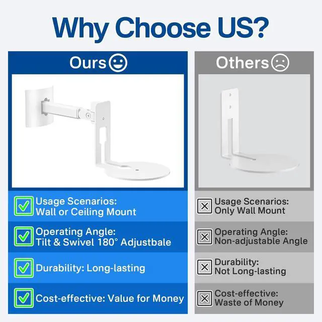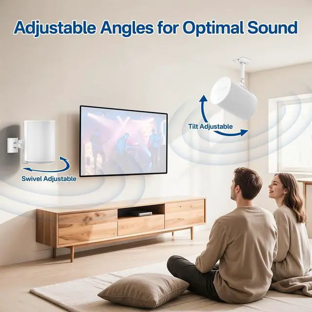 ^^ Flexible Adjustment - For Sonos Era 100 speaker ceiling mount features 180 tilt and 180 horizontal swivel allows you to precisely direct the sound where you want it. Optimize your listening experience and enjoy immersive sound whether you're in your living room, game room, music room, or any other setting. ^^ Sturdy & Secure - Engineered with premium metal construction, safely holds up to 22 lbs. Even if you use it frequently on a daily basis, our wall mount for sonos era 100 bracket will always support your speakers securely.