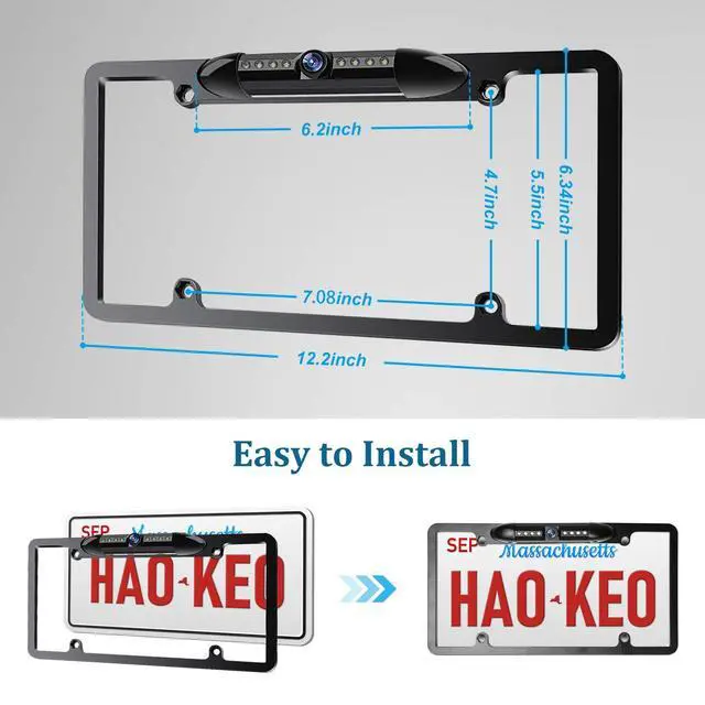 Camera support for up and down angle adjustment and 170 wide viewing angle design ensures safe driving and blind spot-free parking, providing you with a comprehensive view of your surroundings. ^^ IP69 WaterproofIP69 waterproof design, which can work perfectly and provide clear images in extreme environments from -22F to 176F. Even in rain /snow/dust/dog day, you can see road conditions clearly. This License Plate Backup Camera still works in extreme weather, provides a clear image without delay. ^^ GUIDE LINE ON/OFFUsed as a front or rear camera, equipped with DIY reversing line and mirrror function.