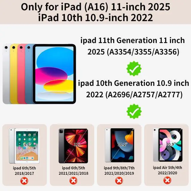 Generation 10.9 inch (Model includes: A3354/A3355/A3356 A2696/A2757/A2777) 2025/2022 Released. NOT fits other Generations' iPad. Please confirm the product before purchase.