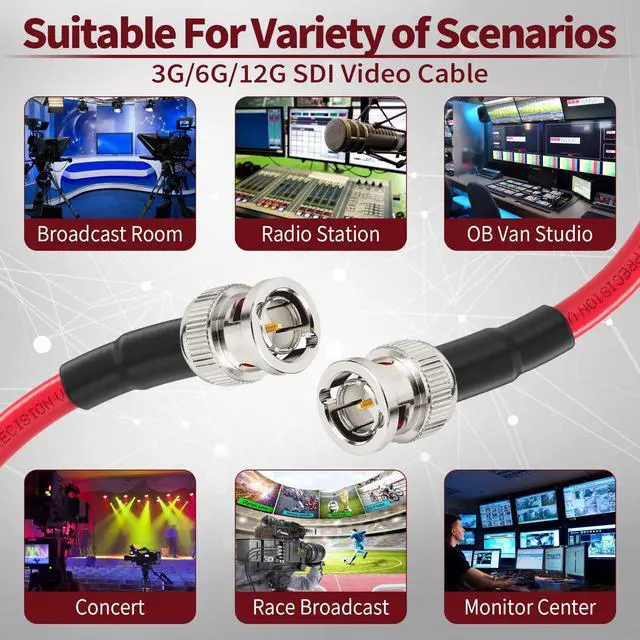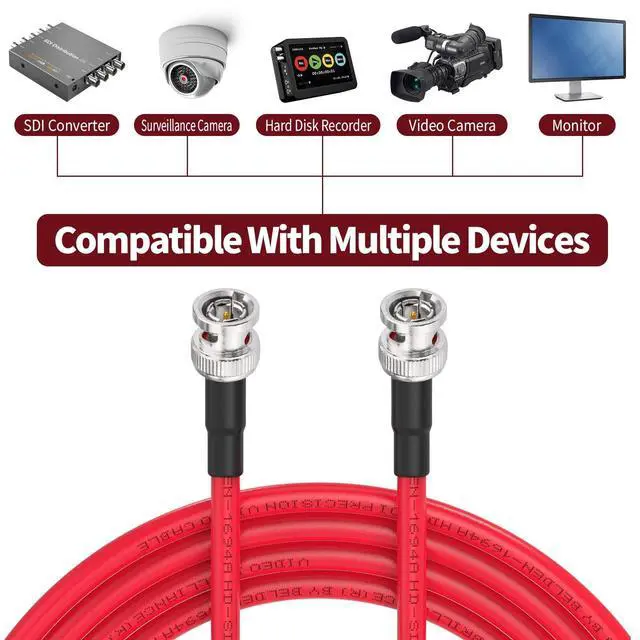 Color: red ^^ BELDEN 1694A Shield Cable that Premium version of RG6 RG59 cable, which made of tinned copper braid and aluminum foil conductor, bare copper conductor. This sdi cable has better shielding and higher transmission rate, few signal attenuation. Ideal for long-distance connection devices ^^ 75 Ohm SDI BNC Male connectors and 75-ohm Coax cables are made for high quality digital video and are able to scale their output depending on the input received. 50-ohm cables/connectors will not give you a high quality level ^^