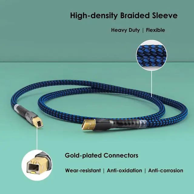 ^^ Shielding: Silver-Plated- The Hi-end USB cord features silver-plated shielding, which provides excellent noise insulation and minimizes interference for a clean and clear audio signal. Experience distortion-free audio transmission with this premium Printer USB cable. ^^ Special-grade high-density polyethylene- The Audiophile DAC USB cable is made with special-grade high-density polyethylene insulation, which offers enhanced durability and protection against external damage. This ensures a long lifespan for the cable, allowing you to enjoy reliable performance for years to come. ^^ 3-Layer shield construction- The High-end USB cable is designed with a 3-layer shield construction, providing superior noise insulation and reducing electromagnetic interference. This ensures a stable and uninterrupted audio signal for a fantastic listening experience. ^^ 24K Gold Plated USB 2.0 Connector- This Hi-res USB cable features a 24K gold plated USB 2.0 connector, offering high-speed data transfer (480Mbps) and optimal signal conductivity. This guarantees a stable connection and efficient data transmission between your devices.