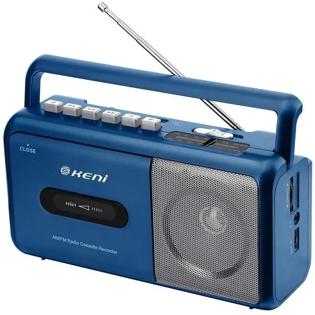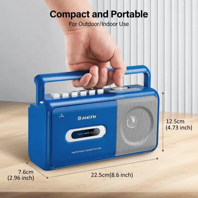 G Keni Portable Cassette Player Boombox AM/FM Radio Stereo, Casette Tape Player Recorder with Earphone Jack Battery Operated or AC Powered (Blue)