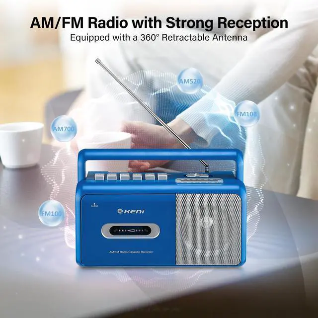 [ Elegant Cassette Player ] The outstanding external appearance design and easy operation will provide a elegant product for you who aspire for life taste, playback your old mix tapes, let you return to the old days and relive your good memories past. ^^ [ Best AM/FM Reception ] This cassette radio player equiped with long antenna and upgrade chip, has a great reception to receive AM/FM stations. and it has a big speaker that can easily play nice stereo sound. 3.5 mm headphone jack for you to plug your headphone. ^^ [ Cassette Audio Recorder ] Recording through the built-in microphone from the external voice or radio.
