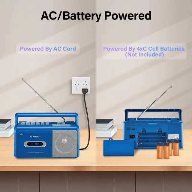 • [ AC/Battery Powered ] You can enjoy the music with this portable boombox cassette player at home with the ac power(Power Cord Included), or use the battery power and g