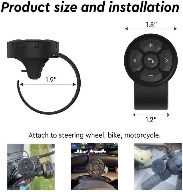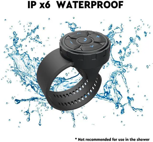IPX6 WATERPROOF This IPX6 waterproof media button can be used for car, bike, sports, jet ski or any tough environment ^^ Bluetooth Remote Control Remotely control your device without installing an appNotes: when you connect your phone to CarPlay, you won't be able to use the button remote or your phone's volume buttons to adjust the volume. CarPlay takes over volume control and puts it on the car's system for easier access while driving. ^^ WORKS WITH iPHONE + ANDROID Answer the call, volume up, volume down, previous song, next song, play/pause, Siri, take photo, compatible for iPhones and Android phones ^^ Easy Installation Directly tie the remote control to the steering wheel, just make sure it won't block your view of dashboard. Cannot be used on the wrist ^^ Long Standby It can be used for 100 hours on a single charge, Simple operation, one key to wake up the device. Automatically shut down after 8 minutes of disconnection, no additional operation required