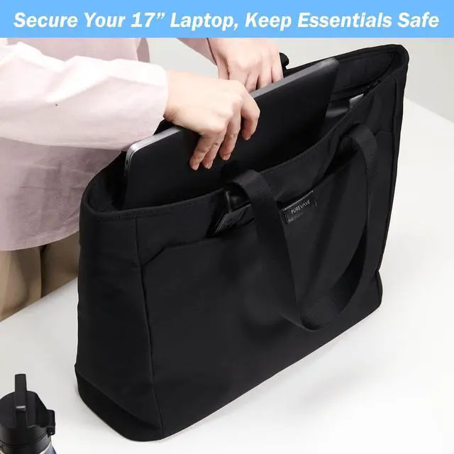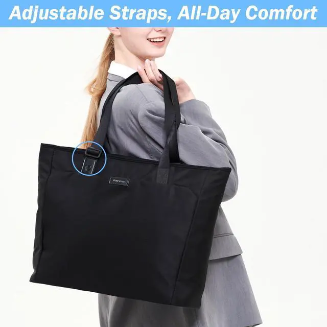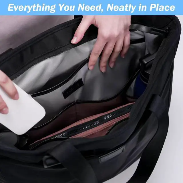 ^^ [Smart Design] Thoughtfully designed with specific pockets for your large-size laptop, AirTag, sports kettle, and a handy keychain strap, this tote bag ensures all your essentials are secure and within easy reach.