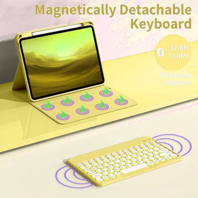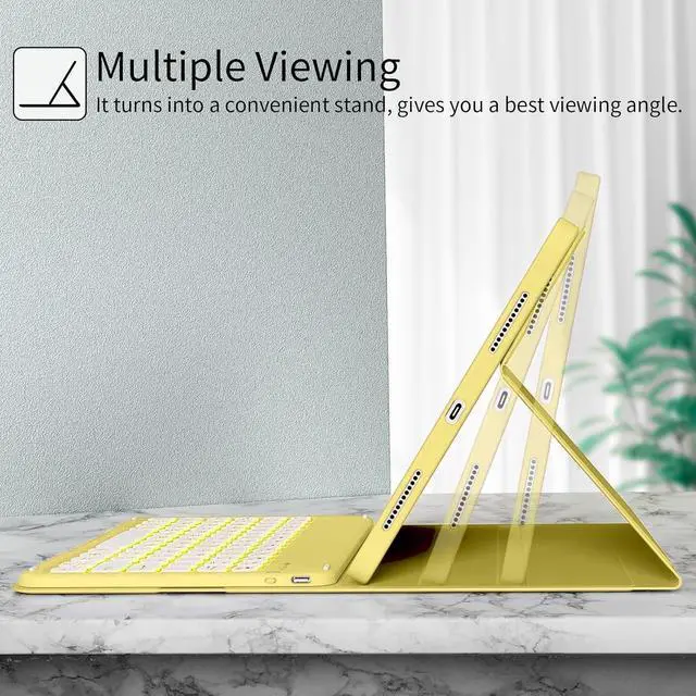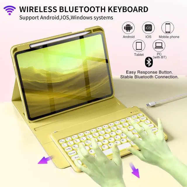Inch 2020 (Model: A2072 / A2316 / A2324 / A2325). and iPad Pro 11 inch 2022/ 2021/2020 released tablet, ^^ PREMIUM MATERIALthis case with keyboard is fabricated from top-notch PU material. It is soft, smooth, and imparts a luxurious feel. The interior case is constructed from high-quality flexible TPU, and the honeycomb grid pattern design facilitates 100% heat dissipation. The keyboard case shields your tablet from drops and scratches. ^^ DETACHABLE MAGNETIC KEYBOARD-rechargeable wireless keyboard can be connected throuh Bluetooth. The magnetically design can hold the keyboard tightly on the Cover. Keyboard is Compatible with iOS, Android, Windows. Just press Fn and corresponding keys (QWE) to change the keyboard system. ^^ SENSITIVE RESPONSE&RETRO ROUND KEYCAPS- a square mechanism under each key improved stability, quick rebound and no delay. The retro round concave keycap matches the shape of your fingertips, and it is comfortable to press and your hands will not feel tired during long-term office work ^^ CONVENIENT TOP-MOUNTED PENCIL HOLDER-this flip folio cover designed with a built-in pencil holder helps your Pencil securely storage and easliy to find.