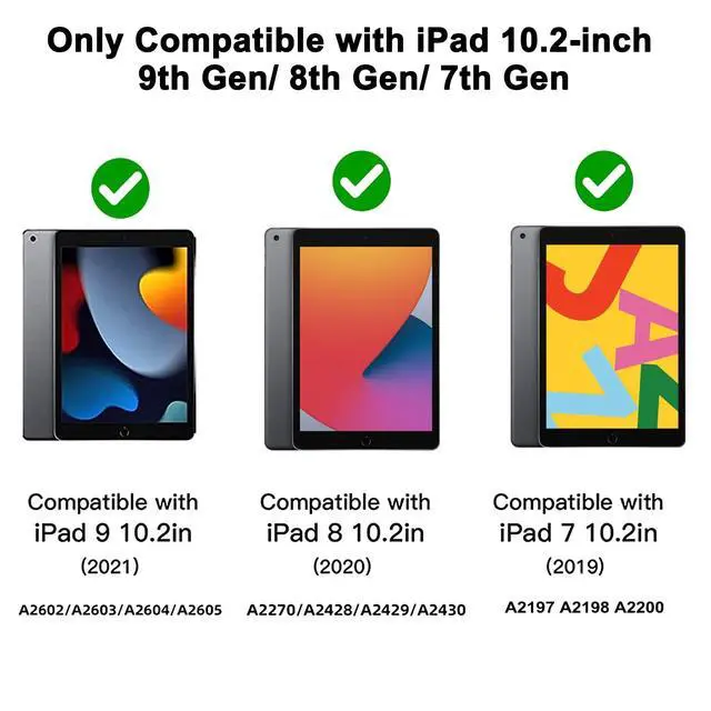 Compatibility: Designed for iPad 9th Generation 2021, iPad 8th Generation 2020, and iPad 7th Generation 2019 models. (A2602/A2603/A2604/A2605, A2270/A2428/A2429/A2430, A2197/A2198/A2200) ^^