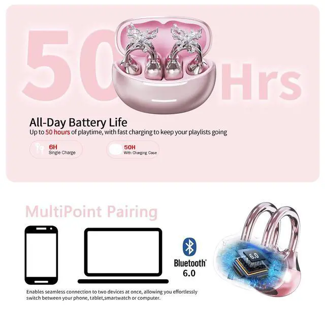 Jewelry-Quality Sound & Style Wear Your Music. Adorn your ears with detachable crystal earrings that sparkle with every move. Inside, precision audio tuning delivers clear vocals and balanced acoustics for music, calls, and podcastsbecause true beauty should be heard as well as seen.