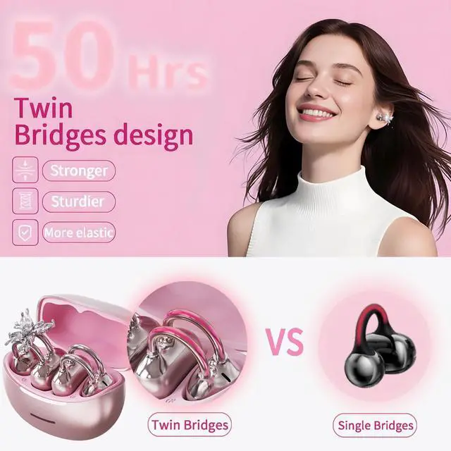 Dual-Tube Locking Earbuds Design Built to Stay Put. Unlike single-tube clips that can wobble, our twin-tube architecture grips your ear with gentle confidenceperfect for active lifestyles. The rose gold finish adds a touch of elegance, while the structure ensures all-day stability without sacrificing comfort.