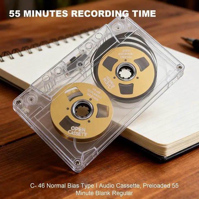 ^^ TAPES: 55 minute blank cassette tape for recording C 46 normal bias I sound cassette tape, preloaded with 55 minute blank normal type, portable premium tape, blank cassette tape comes in a clear case with recording paper inside.