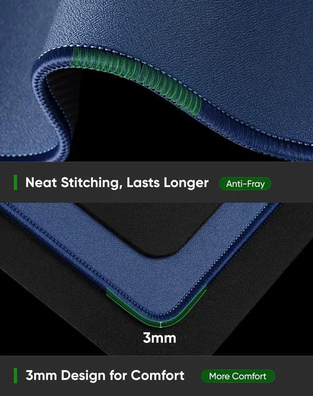 180gsm HEAVY-DUTY JACQUARD FABRIC, 30% DENSER WEAVEExperience superior durability with our premium 180gsm fabric, significantly thicker than standard 120-150gsm pads. The 30% denser weave is engineered to last, offering 100% improved resistance to wear, tear, and fraying edges. Maintains a flat, anti-warp surface for consistent performance. ^^ HEAT-VULCANIZED GLUELESS BOND & NATURAL RUBBER BASENo messy glue! The fabric and base are fused using eco-friendly heat-vulcanization, creating an odorless, anti-peel, and permanent bond. The natural rubber base provides superior non-slip grip and lays flat immediately without curling.