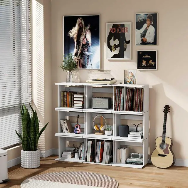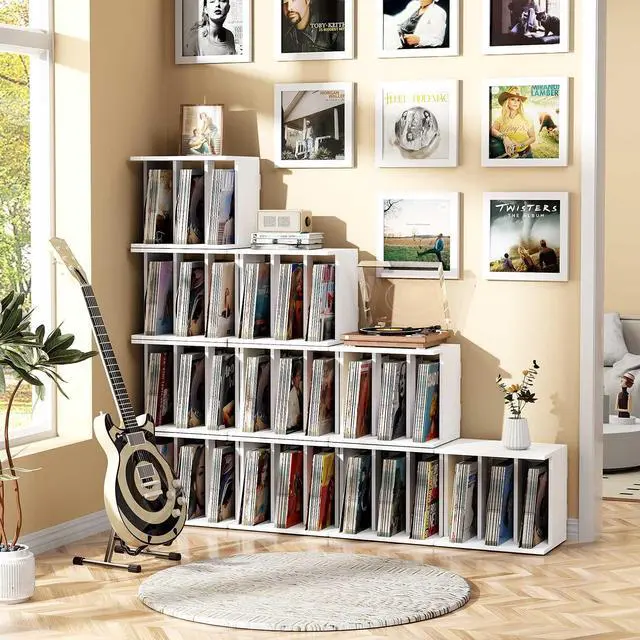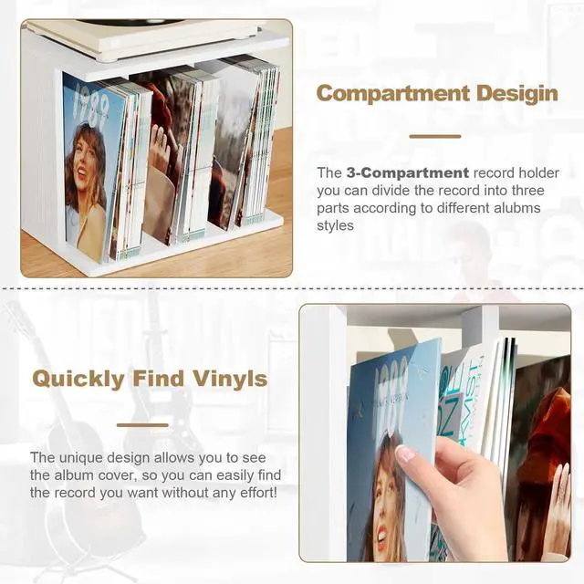 EASY TO FIND RECORDS: The 3-Compartment vinyl record stand with vinyl storage keeps all your records organized, so you can separate them by genre and access your favorite vinyl records quickly and easily ^^ bullet_point