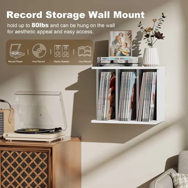 WALL MOUNT DESIGN: Vinyl holder can be flexibly placed on a tabletop or mount on the wall to adapt to various space layouts, so you can enjoy your music without worrying about your turntable sliding off ^^ bullet_point