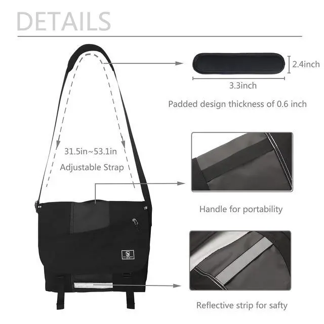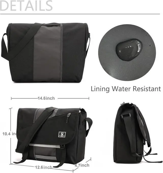 ^^ LARGE CAPACITY: Messenger Bag for Men with 10 pockets to meet your various need. The main compartment of the satchel bag is large enough to hold 14 inch laptop, books, clothes and other daily necessities. Inside bag have two elastic pockets on the side can be used to place your umbrella and water bottle.