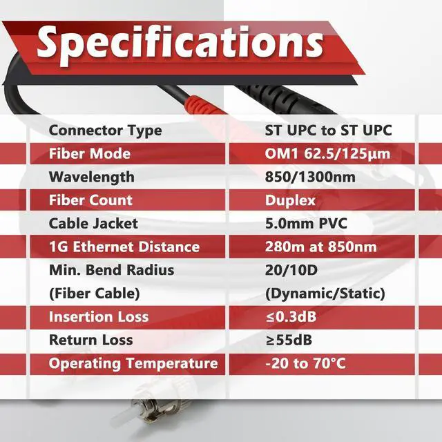 • Pre-terminated OM1 Fibre Cable with ST-ST Connectors