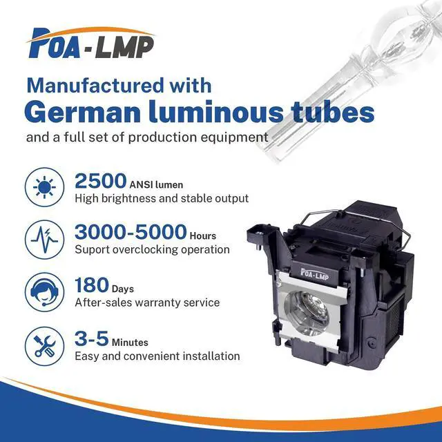 POA-LMP Lamps: Ultra High Efficiency Replacement Projector LampsPOA-LMP has been specialized in projector lamps for more than 15 years, all the lamps are designed accurately matching your original lamps. The POA-LMP lamps use optimized very short arc and high internal pressure lamp wick, with precision coated reflectors, which bring you high brightness, long lamp life and stable replacement lamps. We are aimed to provide customers with ultra high efficiency POA-LMP replacement lamps.