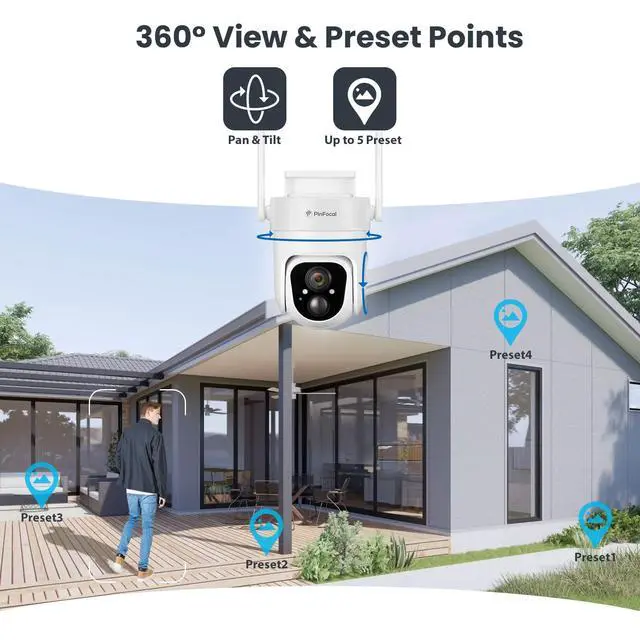 Coverage & Preset Points: Enjoy complete peace of mind with the 355 horizontal and 90 vertical pan-and-tilt feature, ensuring full 360 surveillance coverage. Set up to 5 preset points for no blind spots, and zoom in with 3X digital zoom for detailed monitoring. Perfect for all-around protection and securing your space ^^ 2K Clarity &