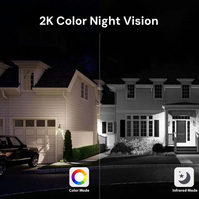 Color Night Vision: Enjoy stunning 2K resolution for crystal-clear live viewing and playback. With Magic Pic function, the outdoor camera wireless adjusts brightness for optimal clarity. Equipped with spotlights, it supports infrared and color night vision, delivering vibrant footage day or night for reliable security ^^ Smart Detection & Multiple
