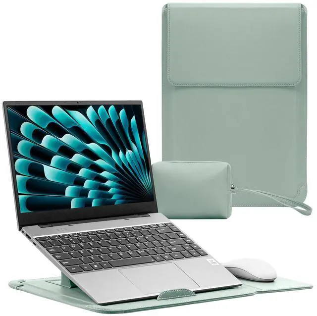 (Note: Some laptops with compatible dimensions may not fit into this case if they are particularly thick or heavy. Please verify your device specifications before purchase. ) ^^ Premium MaterialThe 13"- 13.3" -14" laptop case is crafted from high-quality waterproof PU leather with a soft microfiber interior lining, effectively protecting your device from daily scratches and impacts. It also safeguards against collisions and dust. The smooth surface and gentle texture make it easy to clean, while offering a skin-friendly comfort that complements any style and device. ^^ 3-in-1 DesignThis portable 13"-14" laptop case combines multiple functionsacting as a storage sleeve, adjustable stand, and integrated mouse pad. Perfect for office and travel, it eliminates the need for extra accessories, allowing you to work effortlessly anywhere. ^^ Dual-Angle Adjustable StandPlace your laptop on the stand to adjust viewing angles, reducing neck strain and providing optimal ergonomic comfort. The ventilated design promotes heat dissipation, effectively extending your laptops lifespan. ^^ Anti-collision corner designMultiple layers of protection to safeguard your laptop. Equipped with thickened corners and an anti-slip base, it is also wear-resistant, scratch-resistant, waterproof, and stain-resistant, effectively resisting shocks and drops and reducing wear and tear on your device.