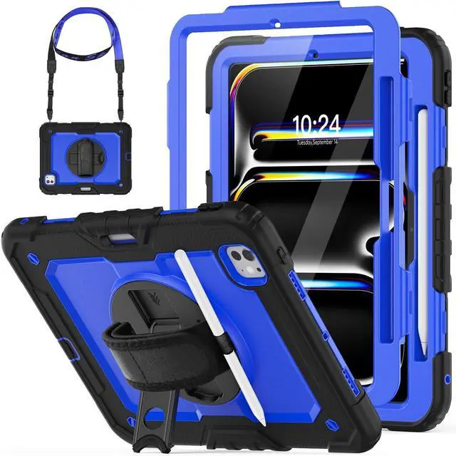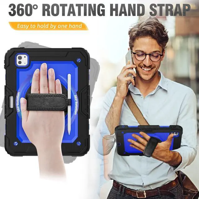 ^^ Rotating Hand Strap & Stand -- This pro 11 m5 m4 case provides a stable supports, with viewing/drawing/typing angles. You can hold the Pad safely by one hand and find the most comfortable viewing angle you need. also, the stand can be folded up when not in use. ^^ Multifunctional Carrying Strap -- Detachable and adjustable shoulder, both kids and adults can carry the pro 11 inch iPad 2025 2024 case during hiking, traveling or other activities outside, or hang it on the back of seat for fun when traveling in cars.