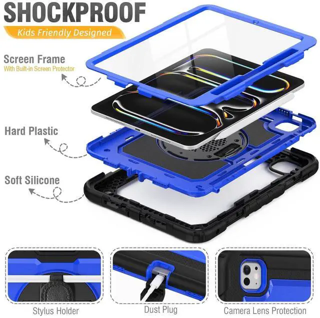 Perfect Fit for iPad Pro 11 inch Case M5 & M4 2025/2024. (Model Number A3357, A3358, A3359, A2836, A2837, A3006). The Pencil is NOT included! and you can find step by step install video on this page. ^^ Shockproof+Screen Protector -- This case for iPad 11 pro is designed with durable anti shock material, soft silicone, hard plastic shell and built-in screen protector. This sturdy pro case can keep your pro 11 m5 m4 safe from shock, drop, scratch or accidental damages in daily use.