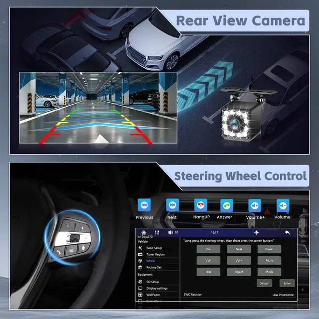 Camera and SWC]: This single din head unit supports reverse image. It will be displayed on the screen automatically when you are reversing. The single din bluetooth car stereo also support steering wheel control, through it you can control the functions that you need by steering wheel