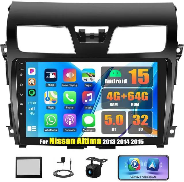 Car Radio for Nissan Altima 2013 2014 201510.1 inch touchscreen head unit for Nissan Altima 2013 2014 2015 with 1280*720 high resolution delivers a vivid and clear visuals for every navigation map and video playback. Upgraded android 15 system equipped with 4G RAM + 64G ROM large memory space ensuring a smooth operation even when running multiple apps simultaneously and faster response speeds ^^ Stable Wireless CarPlay & Android Auto & Mirror LinkThis car stereo for 2013 Nissan Altima supports wireless CarPlay and Android Auto, allowing you easily access calls, navigation, music, and apps through S-iri or G-oogle assistant ensuring safe driving.