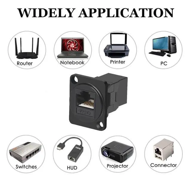 ^^ Wide CompatibilityThis D-type RJ45 PCB signal panel coupler can be used as a panel adapter, compatible with various RJ45 jack panels,. Widely used in PCs, computer servers, printers, routers, switches, network media players, NAS, VoIP cell phones, Poe devices, hubs, DSL and so on. ^^ Easy to UseStandard D series panel mount connector saves installation space, no soldering, no installation tools, just plug directly into a standard crystal header for quick installation.