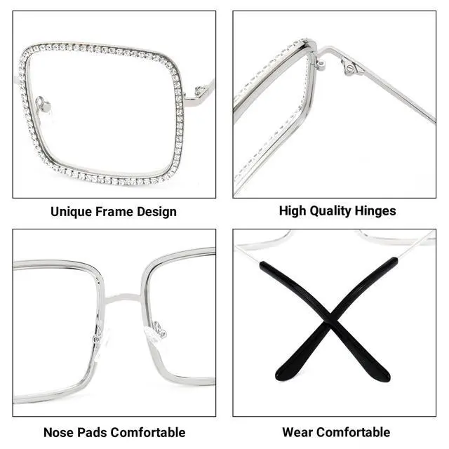 [Frame Design]Golden square frame adorned with colorful rhinestone, radiantly dazzling, suitable for both party events and daily wear, exuding abundant style ^^ [Hd Lens]High-definition, high-lens lenses are adopted, with excellent anti-wear and scratch performance, high light transmittance, helping to restore real colors and bringing a new visual experience ^^ [Non-Prescription] High-definition clear lens eyeglasses with the option to have prescription lenses adjusted by a healthcare professional, No reading magnification ^^ [Frame Material]Metal temple arms with plastic wrapping reduce pressure on the ears; English-style nose pads provide comfortable wear, alleviating the burden on the bridge of the nose ^^ [Square