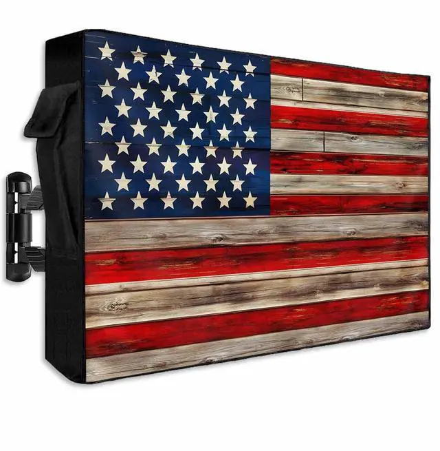• High Quality 600D Cloth: The American flag outdoor TV covers enclosure crafted from premium 600D oxford cloth, our TV enclosure offers exceptional durability to external damage and scratches. The inner PVC coating is soft, won't scratch your screen, thicker and better waterproof, TV screen protector block UV rays and tear-proof property ensures long-lasting sturdiness even in harsh environments, dust-proof and weatherproof design guarantees year-round protection for your valuable television.