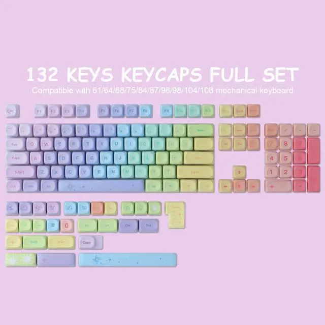 ^^ WIDELY COMPATIBLE: This custom keycap set contains 130 keys. it can fit most 60%/65%/75%/80%/96%/100% (61/64/68/84/75/87/96/980/104/108) Mac PC Windows Layout keyboards like anne pro 2, tkl rk68, rk84, etc.
