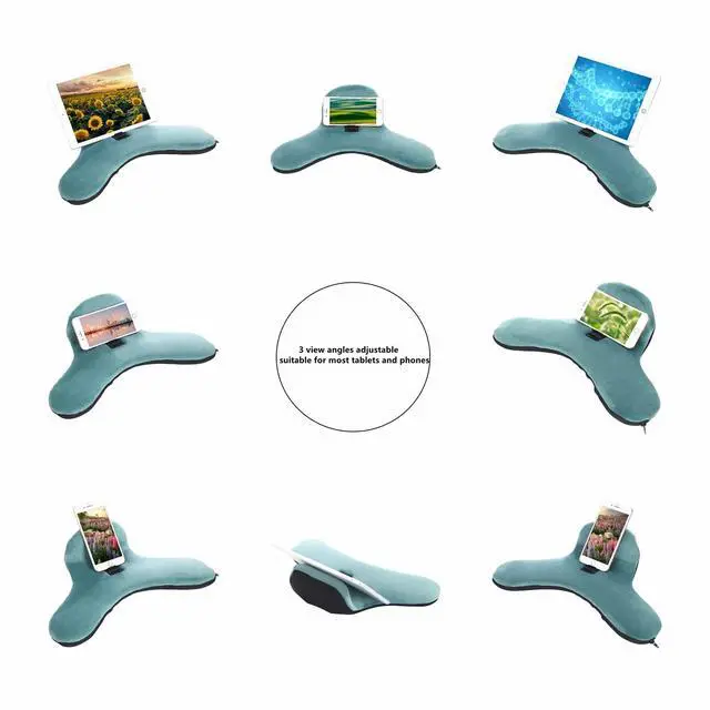 PREMIUM MATERIAL---The ipad pillow stand cover is made of linen and cotton, and the inner core is sponge and polypropylene plastic. Soft pillow holder offers comfortable extended use of your iPad, eBook reader, and tablet computer. ^^ TABLET STAND---Experience hands-free screen time without adjustment issues with STgo pillow cushion. Its tri-ledge design gives you 3 perfect viewing angles, whether you're lying down, sitting up, or standing. ^^ MULTI-PURPOSE---Enjoy your favorite reading, movies, media or simply browsing the web from the comfort of your bed, sofa or armchair with this tablet bed holder.