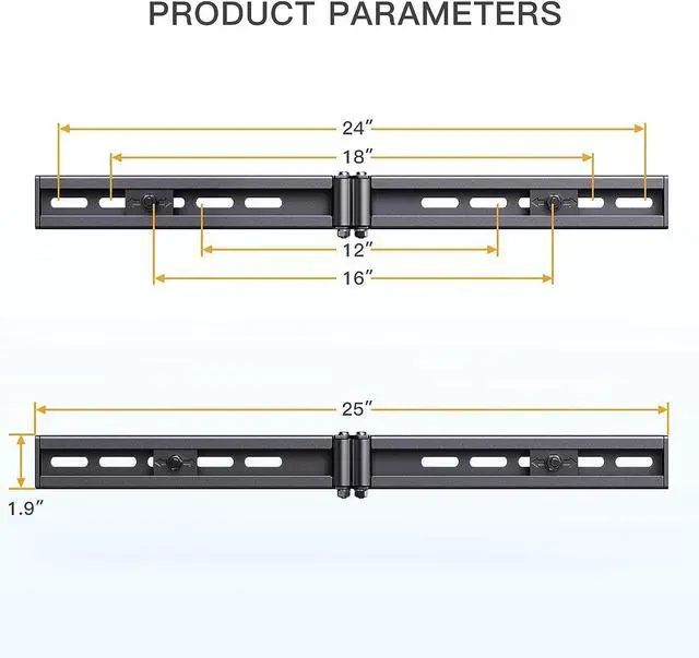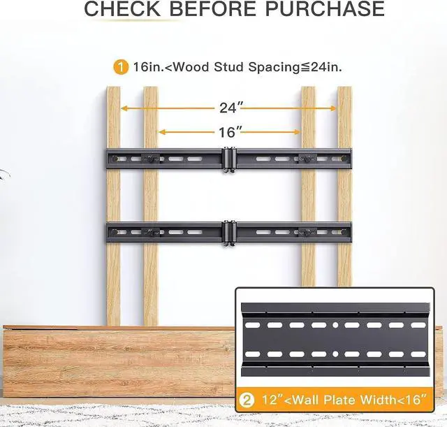 TV Mount Compatibility- Perlegear universal TV wall mount extension bracket extends wall plate to 24, fits for 16 or less than 16" wall plate of tv wall mount.