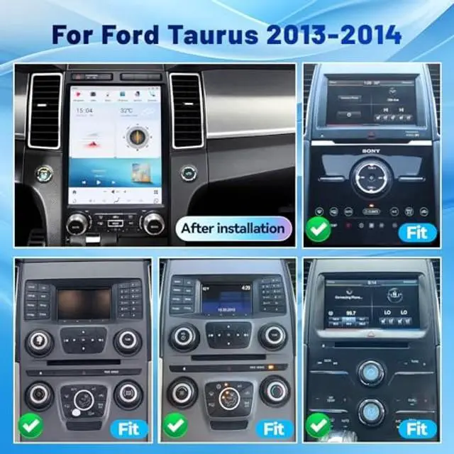 Taurus Screen RadioThe car radio for ford taurus 2013 2014; If you have problems with the installation, please reach out us; For our taurus radio headunit equipped with a smooth & crisp 12.1 -inch T-style IPS capacitive touch large screen, delivering a more high-definition interface; This taurus stereo head unit is a great all-in-one replacement that enhances both the functionality and the modern feel of your cars interior ^^ Lastest Taurus Android 13 RadioThe taurus radio stereo with the newest android 13 system, powerful qualcomm octa-core processor snapdragon 6125; With RAM 4GB + ROM 64GB, supports more software running at the same time and large storage can download more apps, keep browsing, access, music and video playing, play records, etc; Upgrade taurus car radio bring endless possibilities to your journey ^^ For Taurus Carplay Radio ReplacementEnjoy wireless carplay and wire/wireless android auto, the 2013 2014 ford taurus radio featuring bluetooth 5.0 for quick and easy connectivity; Simply talk to Siri or Google Assistant, or touch the display to sync your phones gps navigation, calls, messages, music, and more function; Built-in and external microphones ensure clear, stable hands-free calls, will provide you the excellent experience in the car ^^ Amazing Multimedia functionFor taurus radio 48-band equalizer will suit your taste and listening environment;