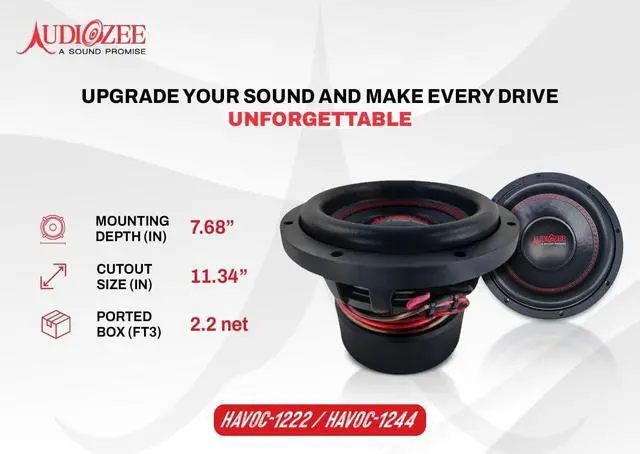 ^^ Universal Car Audio Fit Works in sealed or ported enclosures for flexible installs. Available in 10, 12, and 15 sizes with Dual 2 / Dual 4 impedance options, all backed by Audiozees A Sound Promise guarantee.