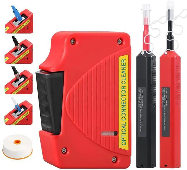 Fiber optic cleaning kit includes: fiber optic cleaning box SC 2.5 mm cleaning pen LC 1.25 mm cleaning pen cleaning box replacement core. This cleaning kit is suitable for most fiber optic tools on the market and is a great assistant for fiber optic cleaning tools. ^^ Wide cleaning range