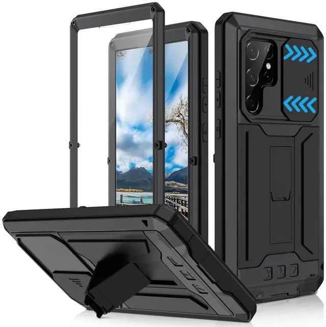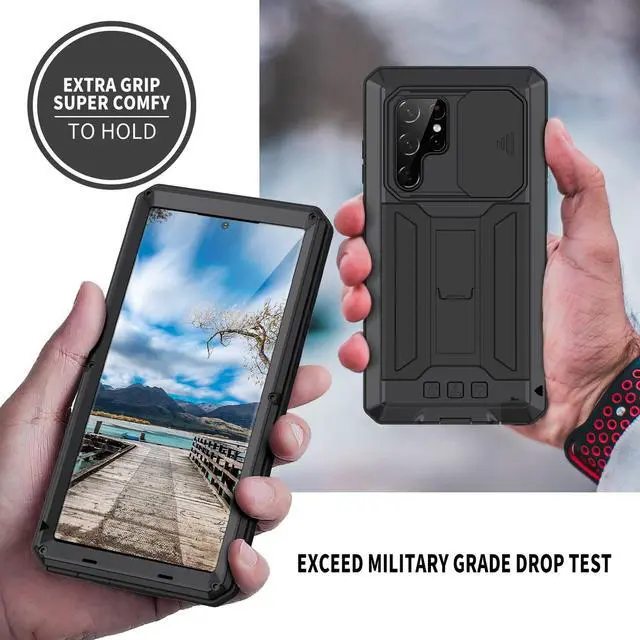 Extreme Outdoor Protection This Samsung Galaxy S22 Ultra rugged case is built for harsh conditions, with a reinforced TPU bumper + metal frame to withstand drops, dust, and impacts. ^^ Full-Body Bumper + Raised EdgesThe 360 shock-absorbent design protects screen, camera, and edges. 1.2 mm raised lips prevent scratches when placed face-down. ^^ Built-in Kickstand for ConvenienceThe sturdy metal stand supports landscape & portrait mode, perfect for streaming, video calls. ^^ Anti-Slip & Wireless Charging FriendlyMatte textured back prevents drops, while precise cutouts ensure full functionality. Works with Qi wireless charging.