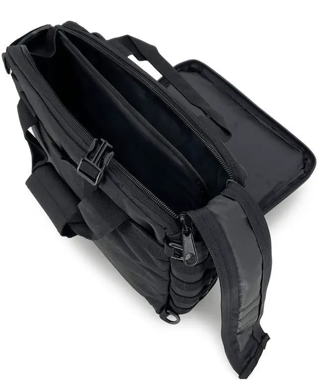 Features: The main pocket can accommodate a 15.6-inch laptop. The front pocket can hold magazines and other items. 4 small pockets and a hidden back pocket can hold computer accessories. The side pocket can hold a water bottle.