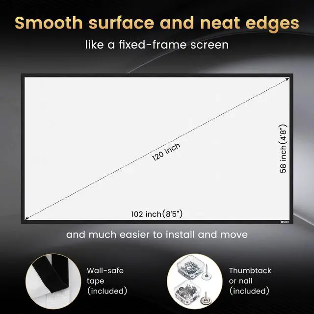 Just like a Fixed-frame With innovative materials and unique installation method, this screen boasts a flat surface and neat edges similar to a fixed-frame screen. This design avoids the wrinkles and spider-web-like edges common in similar products.