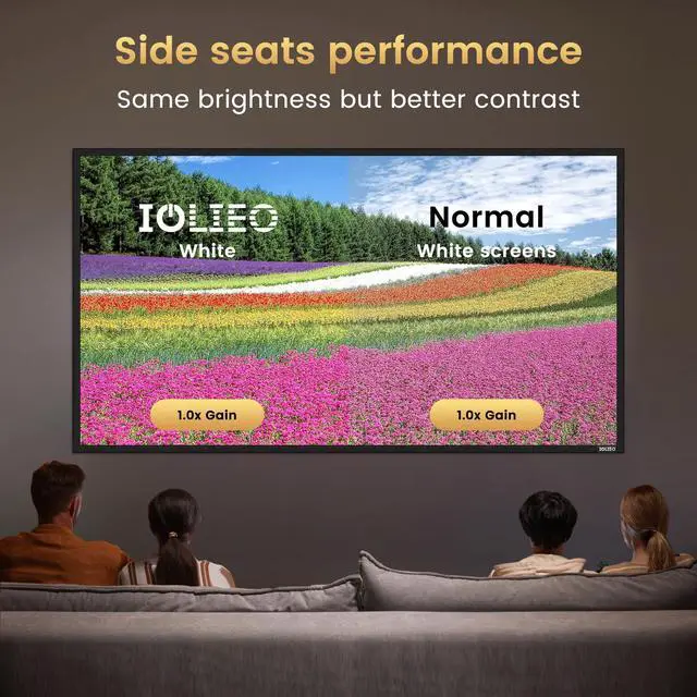 AMBIENT LIGHT REJECTING The screen effectively suppresses ambient light(30%), improving image contrast and color saturation. This makes a better image than normal white screen during the day or with lights on.