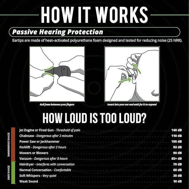 Premium True Wireless Bluetooth hearing protection earbuds: Enjoy cordless freedom with FREE 2.0 Bluetooth earplugs that keep your ears safe in loud environments while enabling wireless audio and 2-way communication. Finally, high-end Bluetooth ear protection designed and built for work. ^^ OSHA approved earbuds with ANSI-certified 25 dB NRR and 85 db