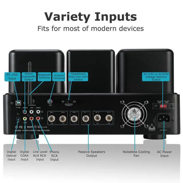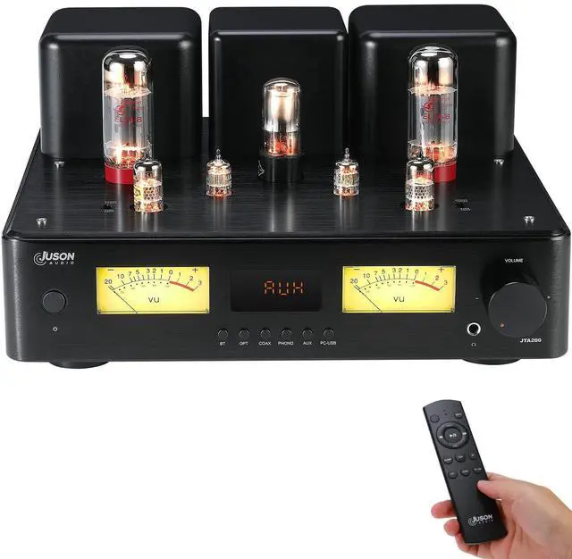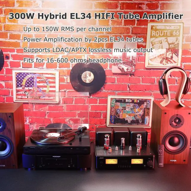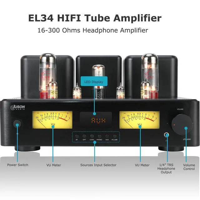Versatile Inputs & Outputs: With 150W RMS per channel output, delivers high-performance amplification powered by EL34 tubes and Toshiba transistors, offering deep, dynamic sound quality that audiophiles crave. This HiFi tube amplifier supports multiple inputs including AUX, COAX, PHONO, OPT, and BT 5.4. It has a headphone output and a subwoofer output, enhancing its versatility and adaptability for various audio setups. ^^