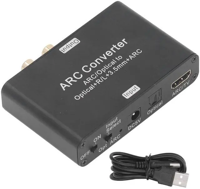 [Stereo Headphone Port] Compatible with headphones or audio amplifying equipment, featuring a 3.5 mm stereo headphone port. ^^ [Multiple Input Support] Easily connect to a wide range of devices with hd arc, optical, and coaxial input switching. ^^ [Volume Control] Easily control volume output through your tv from arc,, and 3.5 mm headphone for convenient ^^ [ 5.1 Channel Transmission] Connect to power amplifier and speaker fiber optic interface with support for 5.1 channel transmissions. ^^ [High Sampling Rate] Ensures hifi sound and excellent audio accuracy with a 192khz audio sampling rate transmission.