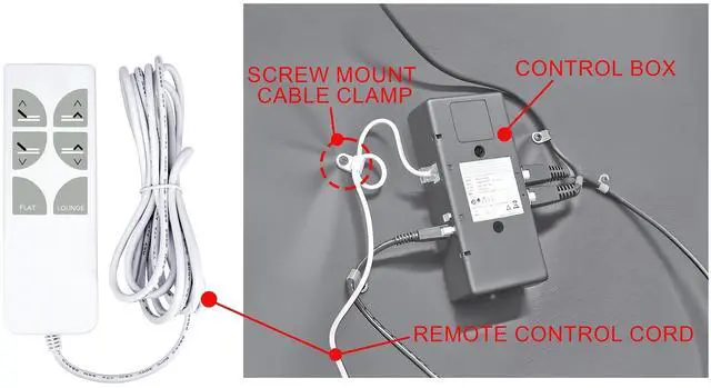 Comes with cable clamp and screws for secure cord routing on typical wood bed frames or platform installations