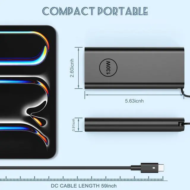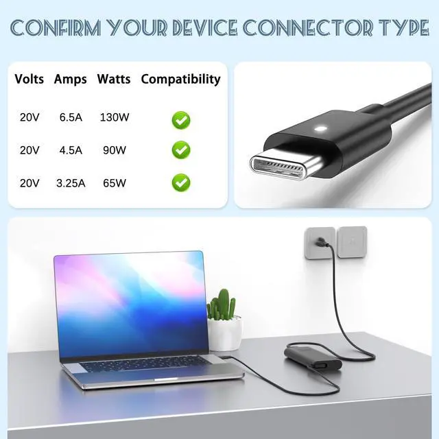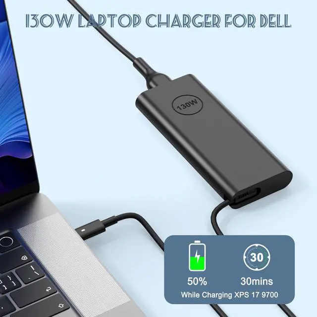 130W USB C Laptop Charger: Input Voltage: 100-240V, Output: 20V/6.5A, Interface: USB-C/Type C Port, Power: 130 Watt( Compatible with 90W 65W USB C Chargers), Power Cord length: 11 feet. (130W high power output, let your XPS, Precision and other devices quickly back to blood, say goodbye to the long wait. 11 feet long power cord for your more convenient use, avoiding the problem of insufficient distance)