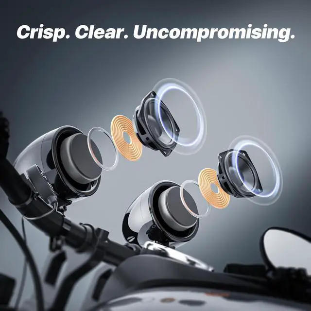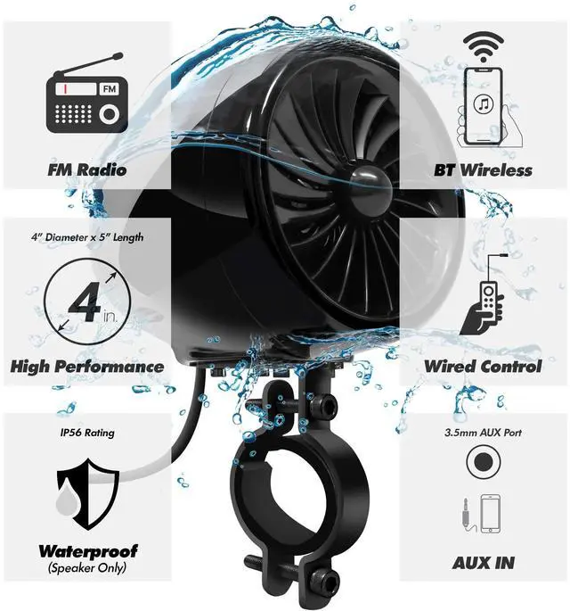 ^^ Motorcycle Speakers Waterproof: IP56 water-resistant design and high power speakers make your music rain or shine.